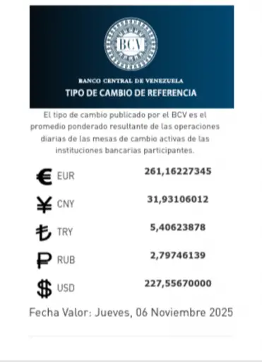 Registrando un ligero incremento en comparación con el cierre anterior, el Banco Central de Venezuela (BCV) estableció el precio del dólar para hoy jueves 6 de noviembre.