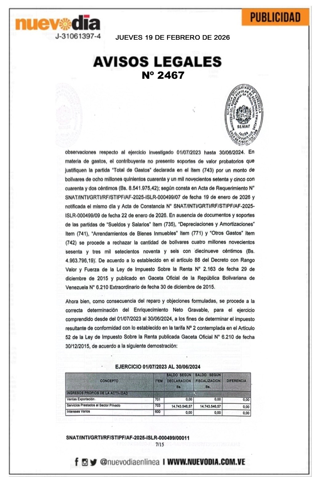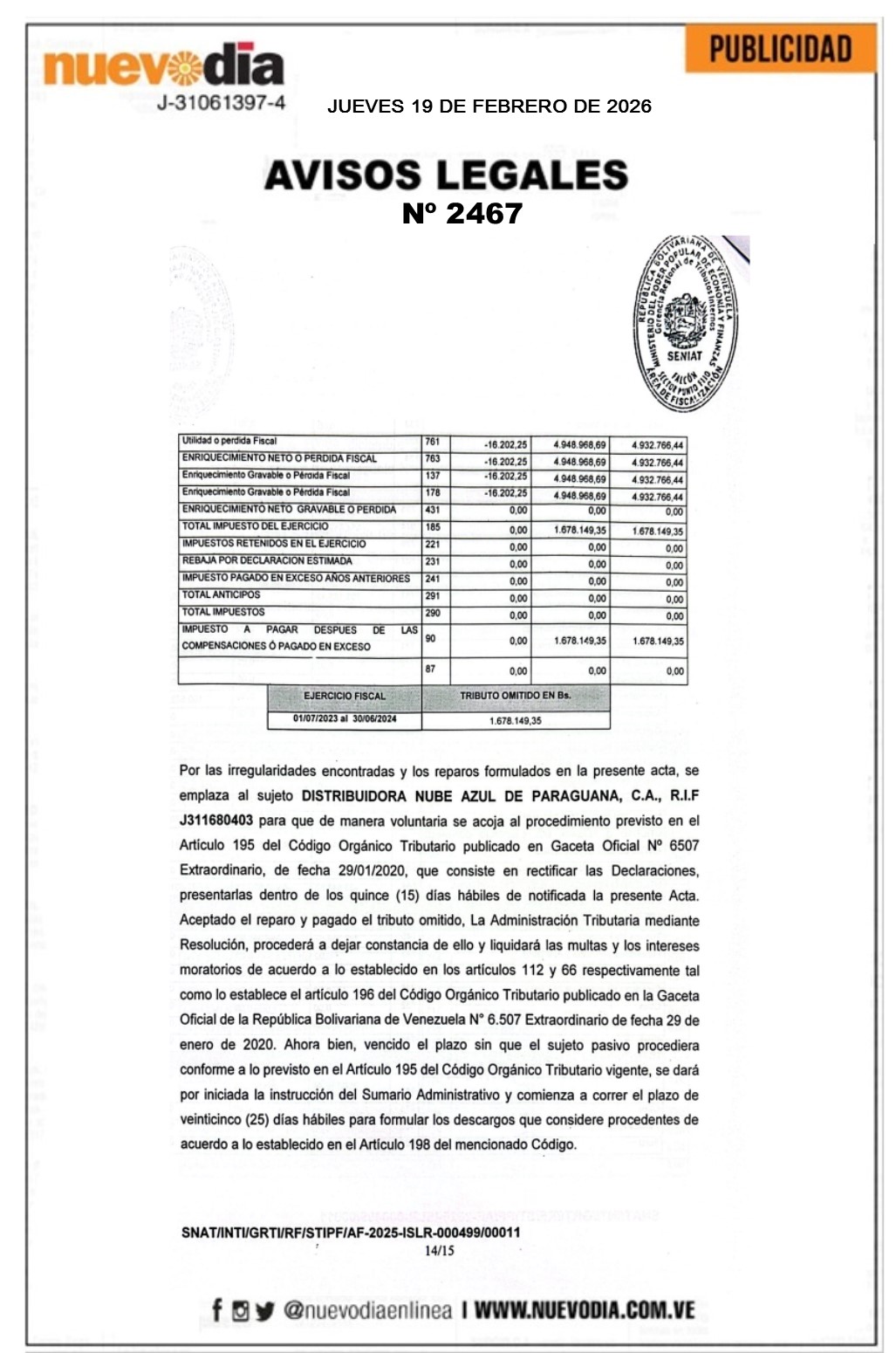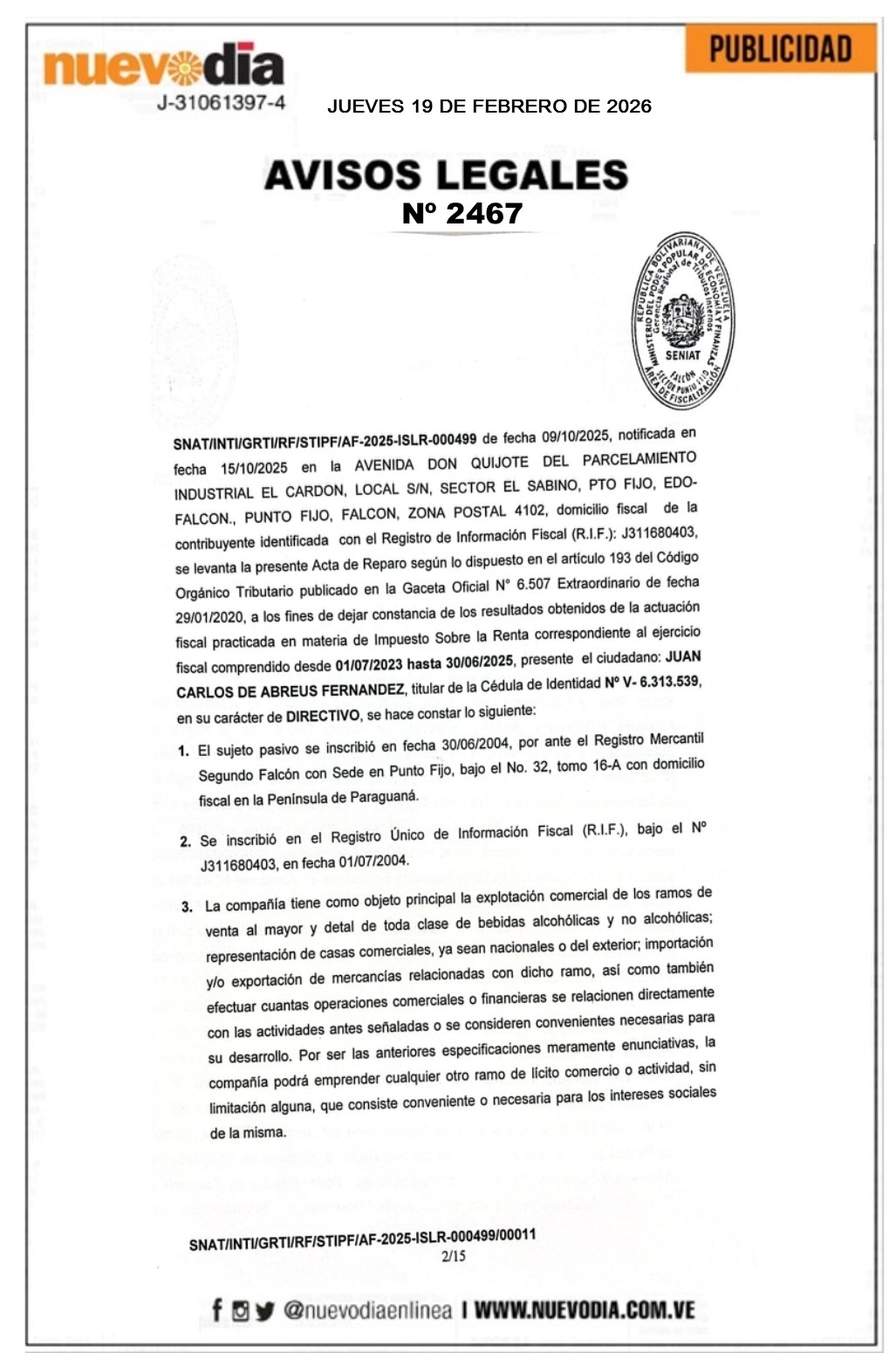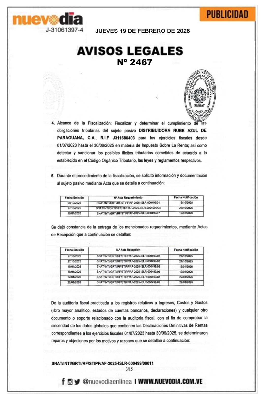 Acta de Reparo,Recepción y Constancia.Distribuidora Nube Azul de Paraguaná.C.A.