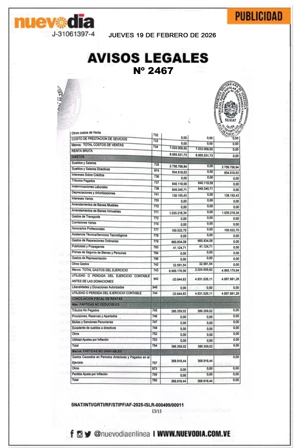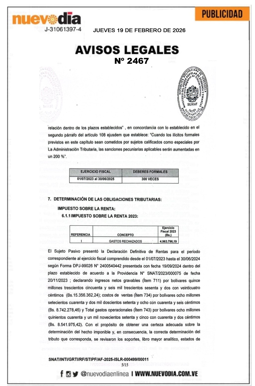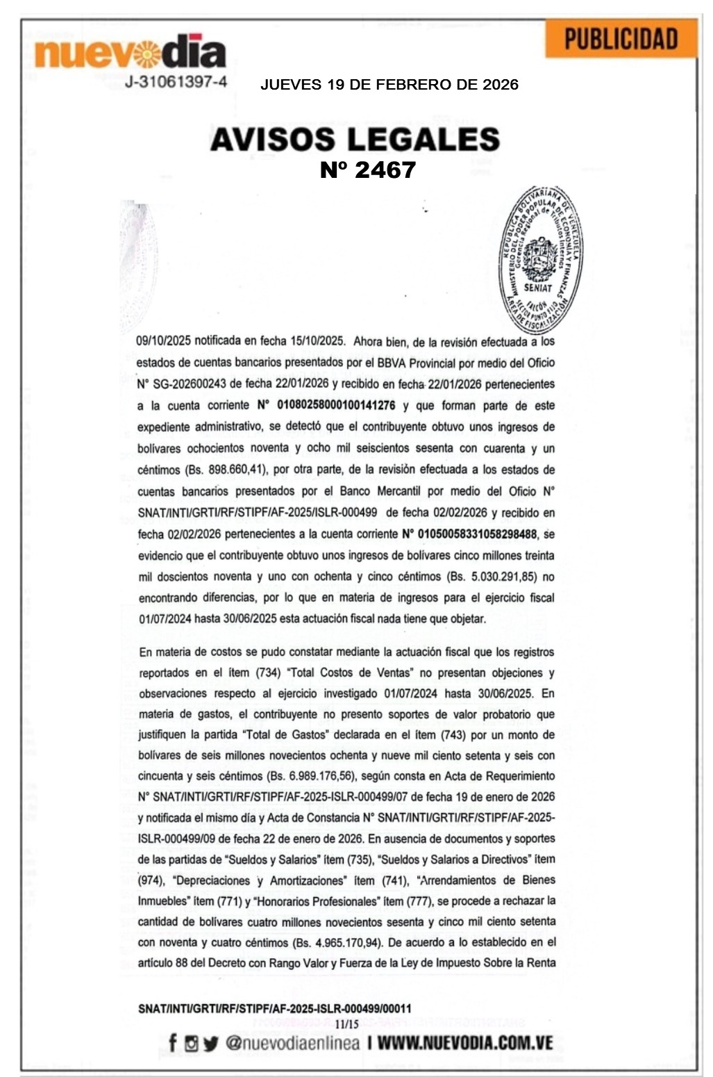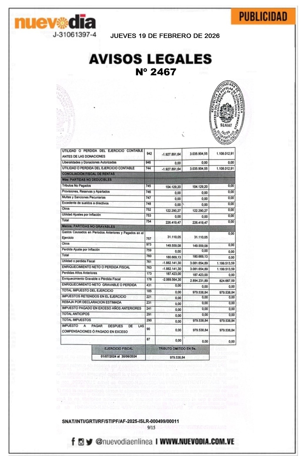 Acta de Reparo,Recepción y Constancia.Distribuidora Nube Azul de Paraguaná.C.A.