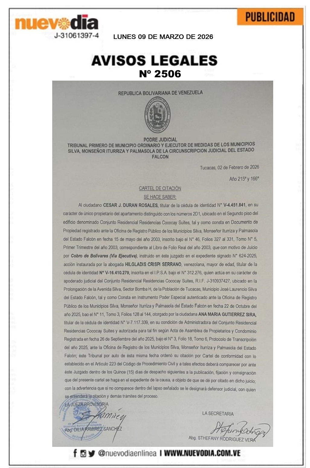 Cartel de Citación.César J. Duran Rosales.