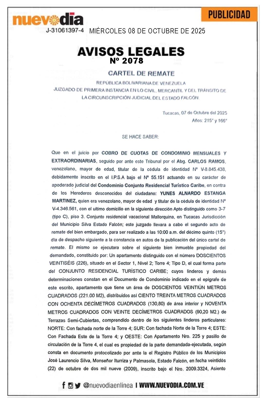 Cartel de Remate.Yunes Alnardo Estanga Martínez.