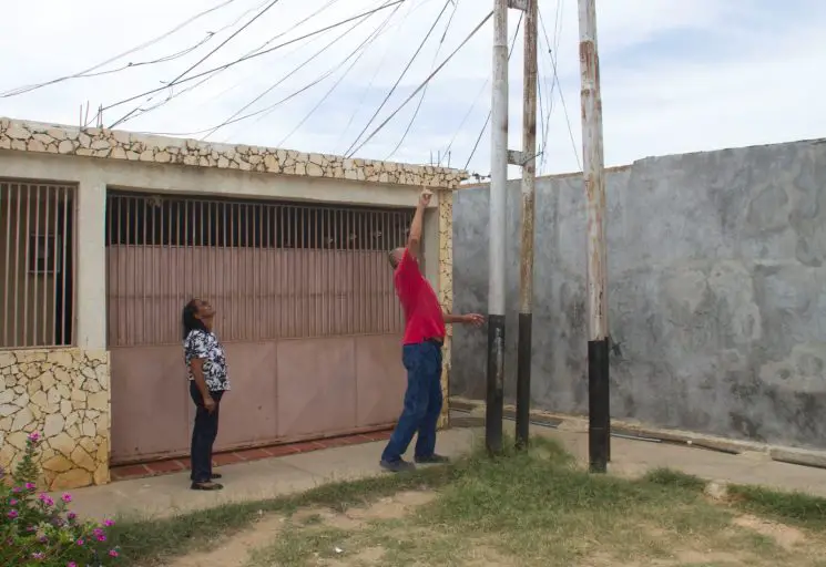 Los vecinos del sector 7 de Antiguo Aeropuerto también denunciaron el mal estado de varios postes en la comunidad. Los mismos están a punto de venirse abajo, poniendo en peligro a los habitantes de las casas cercanas.