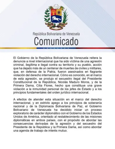 COMUNICADO DEL GOBIERNO DE VENEZUELA