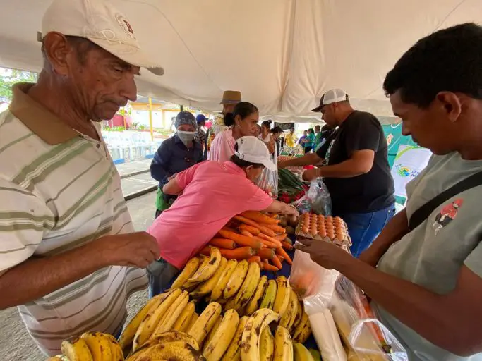 Las familias tuvieron acceso a verduras, frutas, huevos y carne. El evento impulsó el comercio y la producción nacional con la presencia de Emprender Juntos, cuyos emprendedores ofrecieron pinturas y textiles.