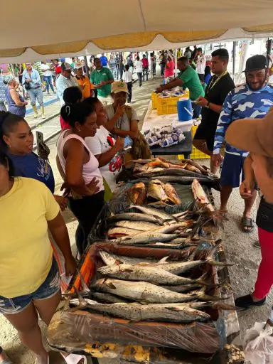 La jornada también contó con una destacada oferta de productos frescos y especializados, mientras el Ministerio de Pesca proveyó diversas especies marinas.Las familias tuvieron acceso a verduras, frutas, huevos y carne.