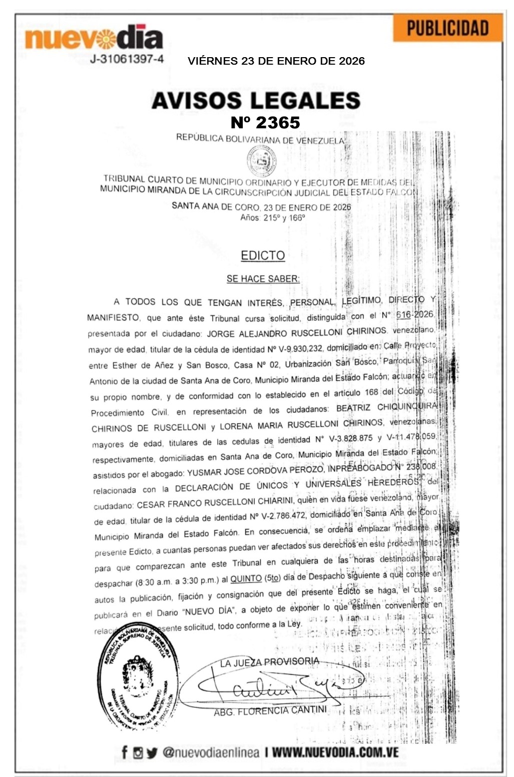 Edicto.César Franco Ruscelloni Chiarini.