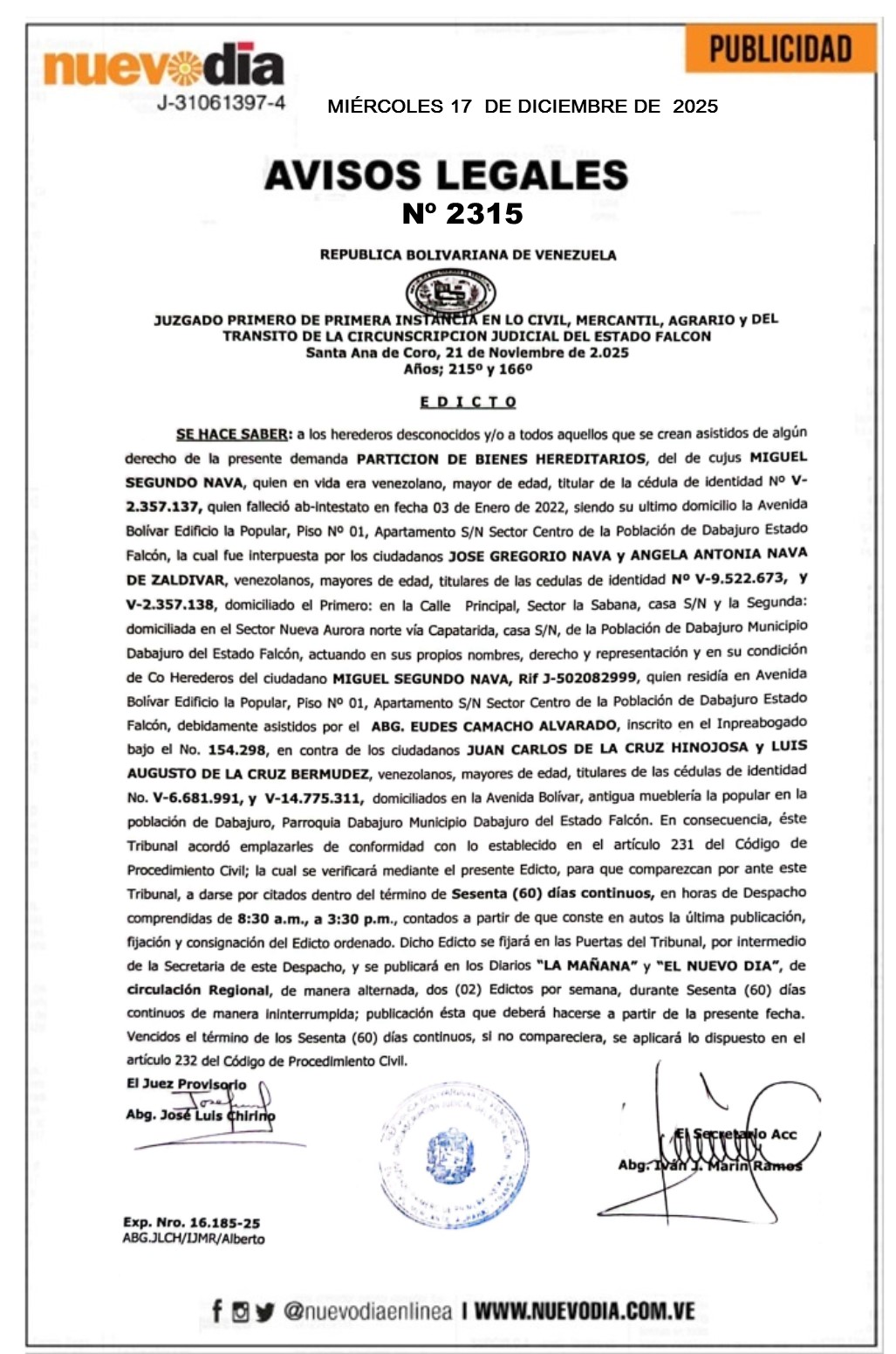 Edicto.Miguel Segundo Nava.