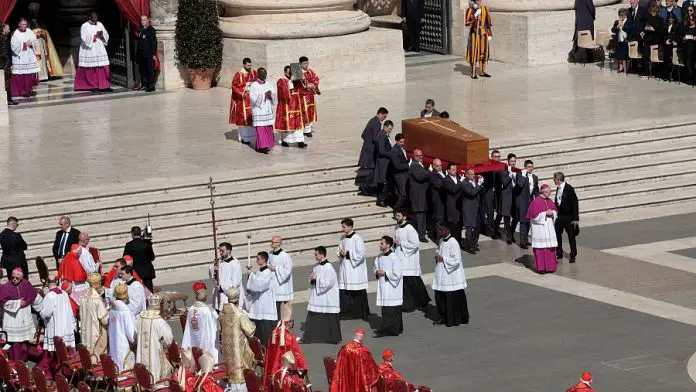 Pero quizá la novedad más importante es el lugar del descanso eterno elegido por Francisco: la Basílica de Santa María Mayor y no las grutas vaticanas, donde se hallan las tumbas de los últimos papas. Por ello, la ceremonia ha supuesto además la despedida de Francisco a San Pedro, el corazón de la cristiandad, antes de iniciar un cortejo fúnebre a través de las calles del centro de Roma.