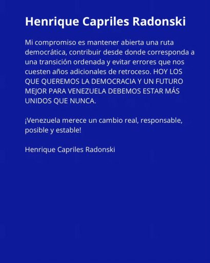 A través de sus redes sociales, el diputado Henrique Capriles envió un mensaje tras el ataque aéreo de EE.UU. que culminó con la detención del presidente Nicolás Maduro y su esposa Cilia Flores.
