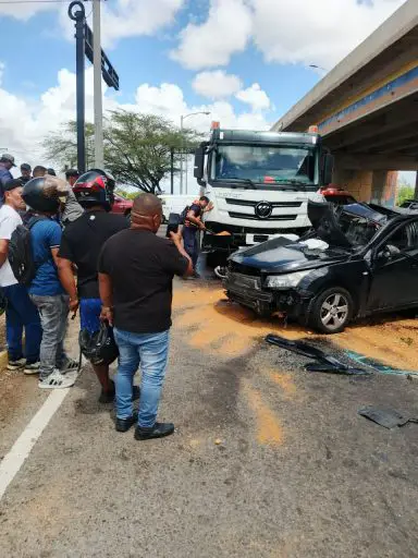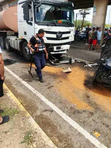 El otro vehículo involucrado en la colisión es una gandola Foton, de color blanco, placas A41DP6K. El conductor, Luis Aldana de 39 años, salió ileso.