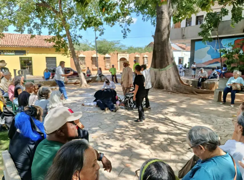 La plaza Falcón de Coro se convirtió en el escenario perfecto para que los colectivos de teatro de las comunas «Heroína Josefa Camejo» y «Triunfadores 5 de Julio» mostrarán su talento.