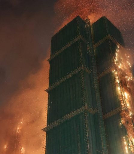 Una densa columna de humo y el derrumbe de partes del andamiaje pueden apreciarse en imágenes difundidas en redes sociales y medios locales, mientras varias carreteras cercanas fueron cerradas al tráfico.