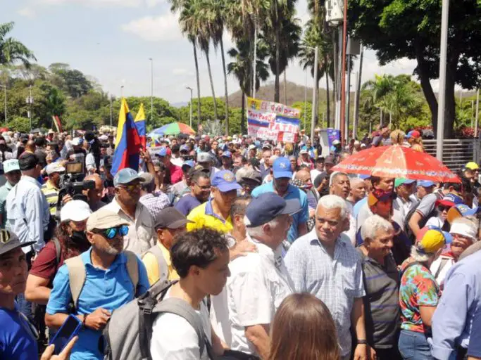 La concentración estuvo integrada principalmente por trabajadores y pensionados. Eduardo Sánchez, presidente del Sindicato Nacional de Trabajadores de la Universidad Central de Venezuela y de la Federación de Trabajadores del Sector Universitario de Venezuela, manifestó la necesidad de que las autoridades escuchen las demandas del sector, que reclama en las calles un salario digno.