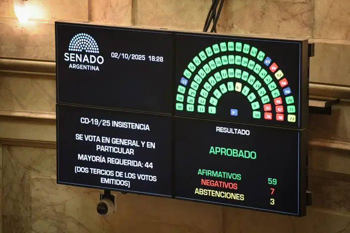 Ambos vetos los rechazaron el pasado 17 de septiembre por la Cámara de Diputados, por lo que, con la decisión del Senado del jueves, el Ejecutivo está obligado ahora a promulgar y aplicar las dos leyes, objetadas por Milei bajo el argumento de que conspiran contra el objetivo de ‘déficit cero’ de su administración.