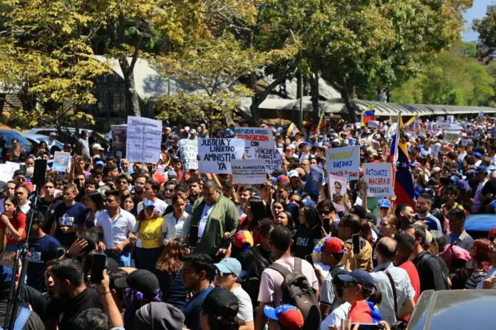 “Queremos un país libre, en democracia. No queremos más presos políticos, pedimos que vuelvan los exiliados, que se aplique la ley de amnistía pero sin filtro”, dijo Maikol Huerta, dirigente estudiantil de la Universidad del Zulia.