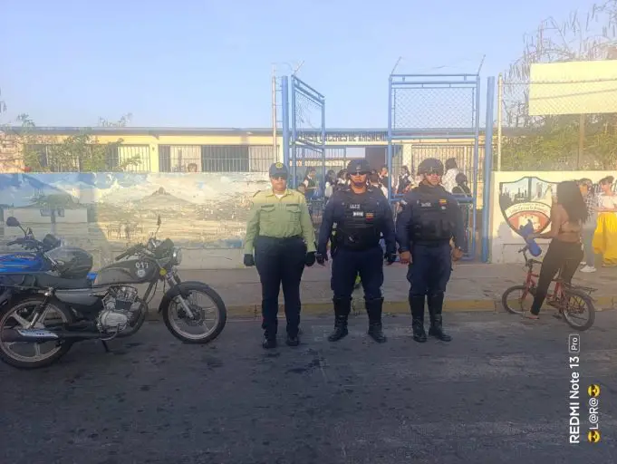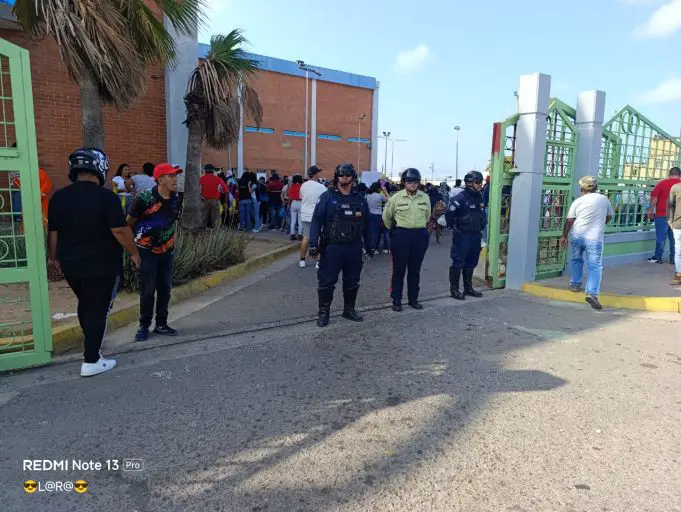 Tanto la Policía de Falcón como funcionarios de la Policía Municipal en Carirubana estuvieron presentes desde las 8:00 de la mañana en la Unidad Educativa Nacional Luisa Cáceres de Arismendi en la parroquia Norte del municipio Carirubana en la Comuna Socialista Alí Primera «El Cantor».