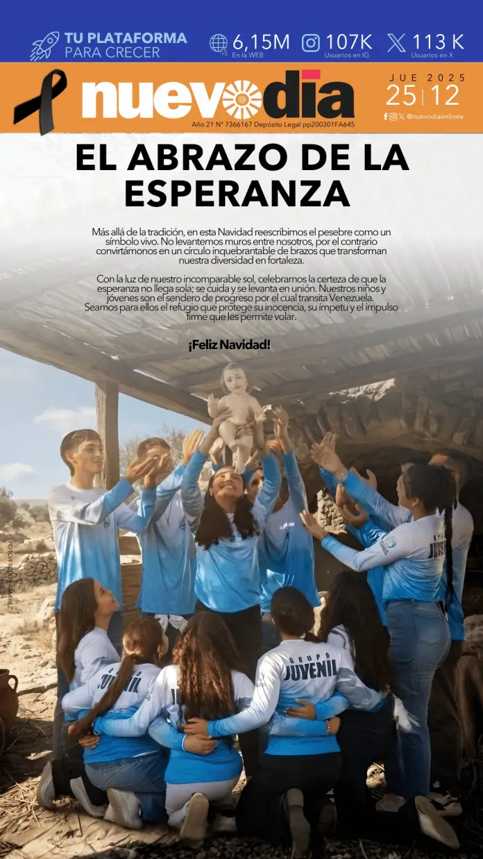 InicioPortadas Portadas Portada jueves 25 de diciembre de 2025 25/12/2025 FacebookTwitterPinterestWhatsApp Cuota FacebookTwitterPinterestWhatsApp Artículo anteriorEdicto.Morella Ramírez de Lanz.Artículo siguienteCartel de Intimación.Oneyalberth Corina González Lugo. Laura ArismendiEl periodismo...mi forma de vida. Noticias Relacionadas Portadas Portada miércoles 24 de diciembre de 2025 Portadas Portada martes 23 de diciembre de 2025 Portadas Portada lunes 22 de diciembre de 2025 Redes Sociales20,299FansMe gusta112,425SeguidoresSeguir4,600SuscriptoresSuscribirte Últimas noticias Destacadas Excarcelan a 99 detenidos por protestas tras presidenciales del 28-Jul Destacadas AN aprueba por unanimidad Ley contra la piratería y actos ilícitos internacionales Cargar más