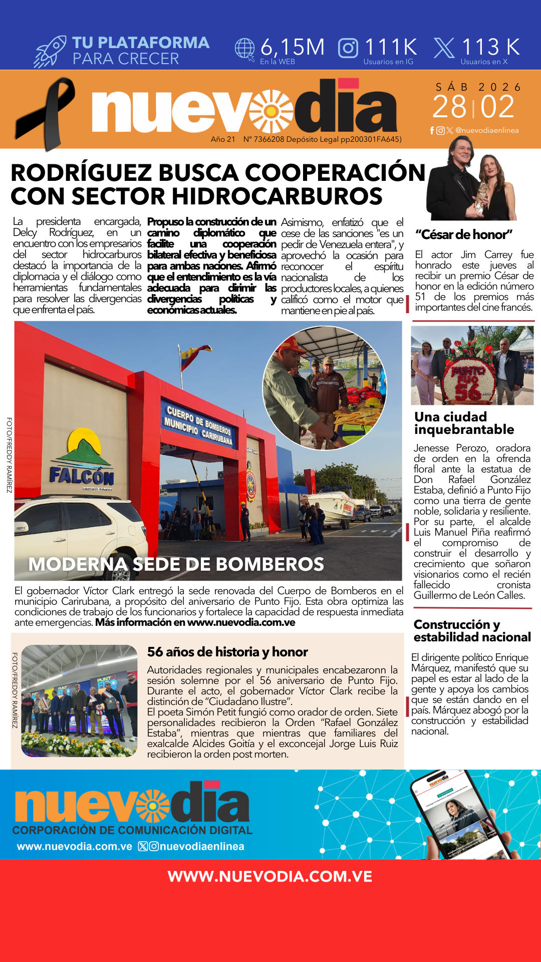 InicioPortadas Portadas Portada sábado 28 de febrero de 2026 28/02/2026 FacebookTwitterPinterestWhatsApp Cuota FacebookTwitterPinterestWhatsApp Artículo anteriorEdicto.(Interdicción Civil).Omari Susalin Beloniz. Laura ArismendiEl periodismo...mi forma de vida. Noticias Relacionadas Portadas Primera del 27 de febrero de 2026 Portadas Primera del 26 de febrero de 2026 Portadas Portada miércoles 25 de febrero de 2026 Redes Sociales20,299FansMe gusta112,425SeguidoresSeguir4,600SuscriptoresSuscribirte Últimas noticias Destacadas Freddy Superlano recupera su libertad plena tras permanecer con grillete electrónico Destacadas Enrique Márquez aboga por la construcción y estabilidad nacional Cargar más
