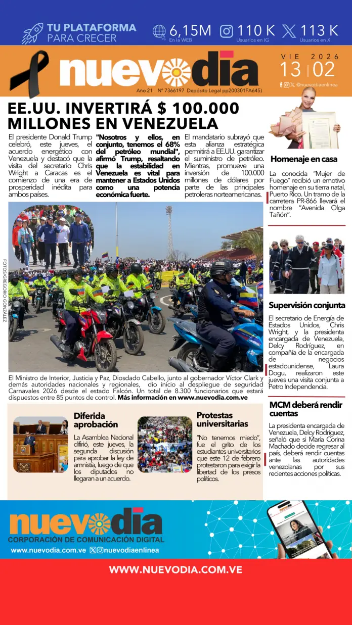 Portada viernes 13 de febrero de 2026