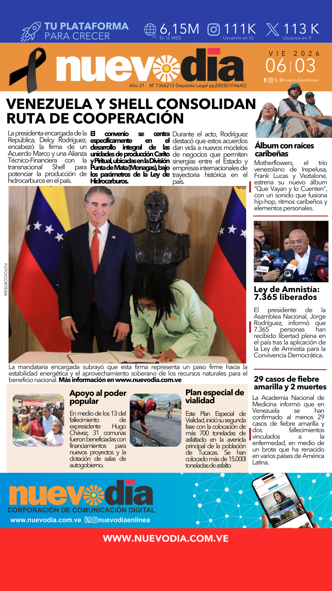 InicioPortadas Portadas Portada viernes 6 de marzo de 2026 06/03/2026 FacebookTwitterPinterestWhatsApp Cuota FacebookTwitterPinterestWhatsApp Artículo anteriorBritney Spears es detenida en California por conducir bajo los efectos del alcoholArtículo siguienteCartel de Intimación.Daniela José Arcaya Mendoza. Laura ArismendiEl periodismo...mi forma de vida. Noticias Relacionadas Portadas Portada jueves 05 de marzo de 2026 Portadas Primera 04 de Marzo de 2026 Portadas Portada martes 3 de marzo de 2026 Redes Sociales20,299FansMe gusta112,425SeguidoresSeguir4,600SuscriptoresSuscribirte Últimas noticias Destacadas Así se cotiza el precio del dólar en Venezuela hoy 6-Mar Destacadas Academia Nacional de Medicina confirma 29 casos de fiebre amarilla y dos muertes Cargar más