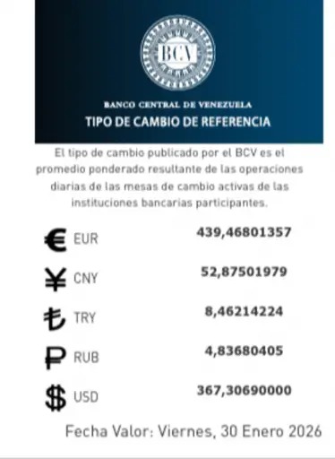 En comparación con el tipo de cambio al cierre de diciembre, el valor oficial del dólar estadounidense experimentó un incremento del 23,20 %. De esta manera superó ligeramente la variación registrada en el último mes de 2025, que fue de 21,36 %. Este comportamiento se enmarca en la estrategia del Banco Central de Venezuela (BCV), que ha optado por un ajuste controlado en la cotización del dólar.