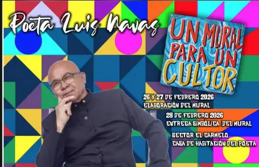 Este jueves 26 y viernes 27 de febrero, la Fundación Cultural » Leonel Vera » con el apoyo de la Alcaldía del municipio Colina realizará el proyecto «Un Mural para un Cultor» para enaltecer al poeta Luis Navas.